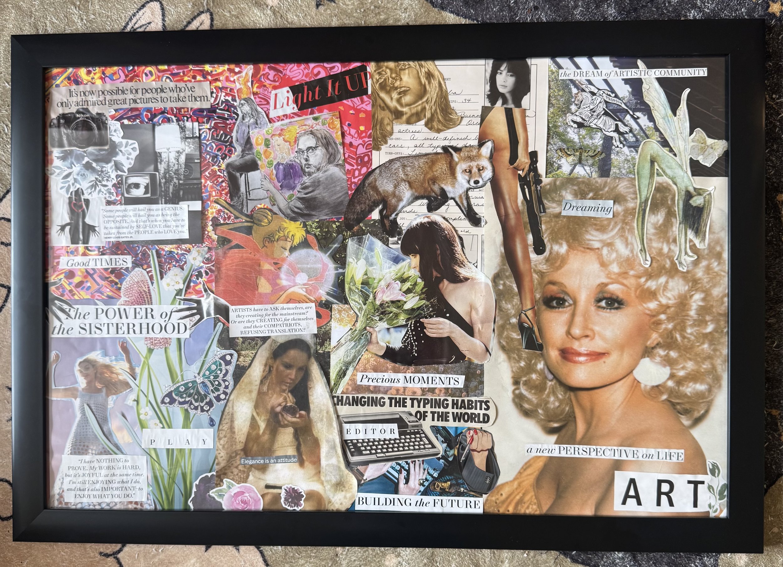 That’s about everything you need, however, you can get creative and use items like stickers and self print-outs, too! Since the physical board doesn’t have the luxury of an “undo” button, I recommend before adding glue to lay down the pieces you want on the board and start creating a rough draft of your layout. Voilà! With only a couple paper-cuts and mildly sticky-glue fingers, you have created your own piece of wall decor and manifested your goals for the New Year.